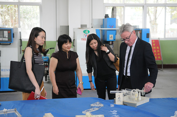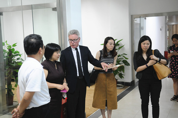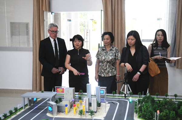 抵达学校后,马克•卡罗尔教授一行首先参观了图书馆总馆、南区分馆、数控实训基地、模拟法庭、信科实验大楼、新法院实验室、18号教学楼和体育馆。在图书馆,马克教授饶有兴致地与老师们交谈,询问图书馆建设和学生读书情况。在新法院融媒体实验室,马克教授对我校应用型人才培养定位表示赞同,并表示阿德莱德大学也十分重视对学生的职业引导。