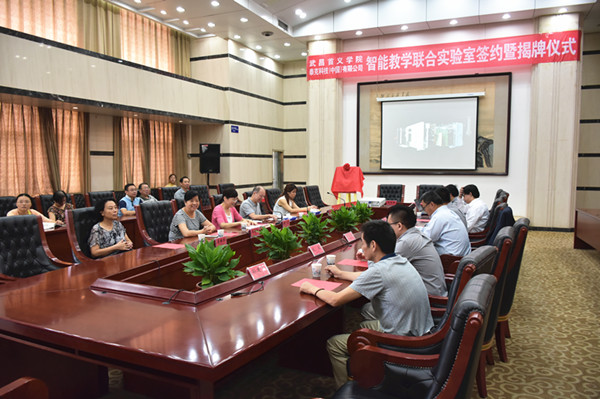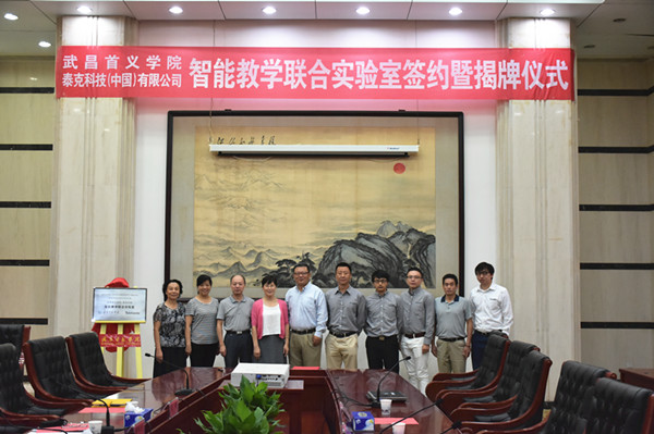据了解,此次与泰克科技有限公司共建智能教学联合实验室,双方将在教育技术实践人才培养、师资培训、教育技术研究、教育软件开发、设备共享等方面合作。利用合作双方的资源优势,采取产、学结合教育人才培养模式,多形式组织开展教学、实训及实践活动。