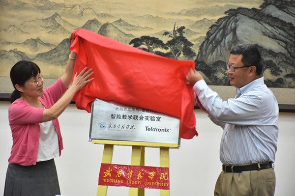 9月27日上午,学校与泰克科技(中国)有限公司共建的智能教学联合实验室在行政楼八楼签约揭牌。泰克公司大中华区销售总监宋磊和我校校长周进代表双方签订合作协议,并为实验室揭牌。