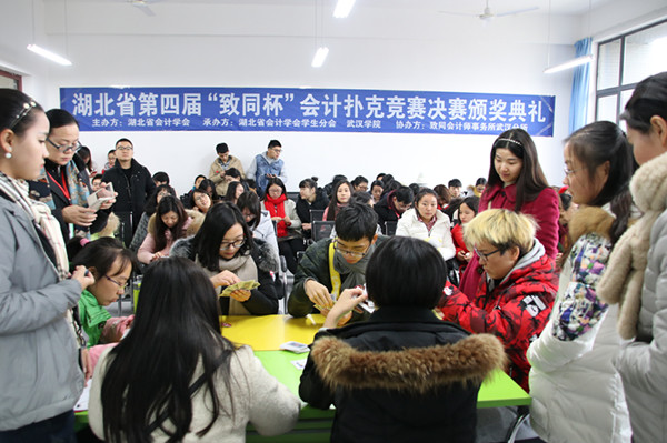 11月24日上午,第四届武汉地区“致同杯”高校会计科目扑克大赛在武汉学院黄家湖校区隆重举行。经过激烈角逐,我校经济管理学院樊晶晶同学荣获二等奖,经管院代表队荣获团体优秀奖。