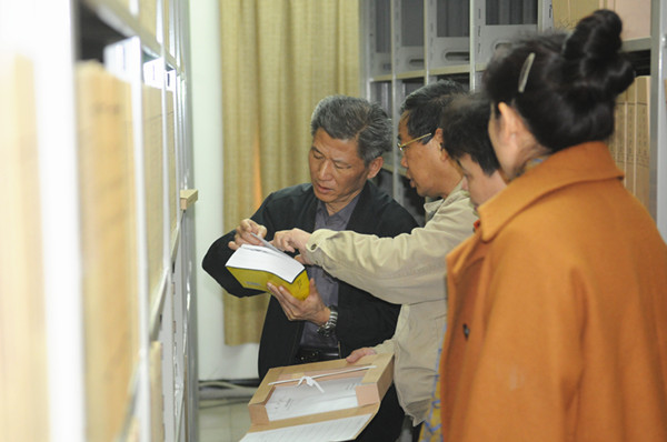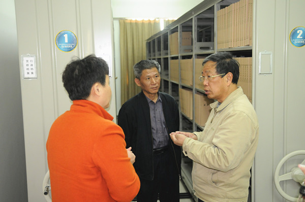 吴绪成一行首先实地考察了学校档案馆的管理和业务工作,随后进行座谈。江国富介绍了学校档案管理工作现状。他说,学校领导高度重视档案工作,学校办公会议多次研究档案工作,并每年召开一次全校档案工作会议;学校按照教育部和国家档案局第27号令的要求和《高等学校档案工作规范》和《高等学校档案实体分类法》做好档案工作。近几年,档案馆在档案材料的收集和规范化问题上下了很大功夫,尽量多收集档案材料,对难以收集的材料,采取了一些激励机制,也取得了一定效果,为档案工作更好地服务于学校的各项工作,服务于校友和为今后建设校史馆和深度编研打下基础。