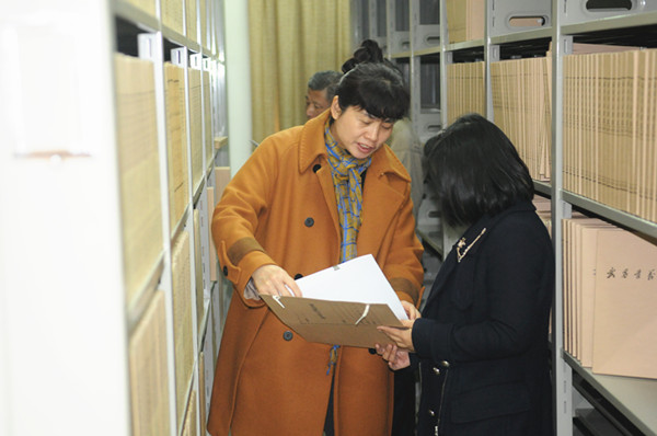 3月10日,湖北省档案局副局长吴绪成、经科处副处长周幼芬一行莅校调研档案工作。校长周进、党委副书记邹星庐,档案馆馆长江国富、科长裴晓华陪同调研。