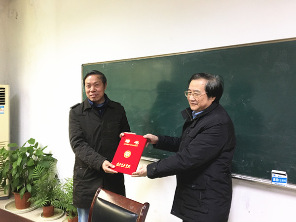 机电院院长吴昌林(兼)高度赞扬了原院长徐盛林教授多年来为学院做出的突出贡献,机电院的不断发展无不浸透着徐教授的心血,他在任七年为机电院学科建设、教学改革、师资队伍建设、科研等方面的工作打下了坚实的基础。随后,吴昌林代表学校为徐盛林颁发聘书。