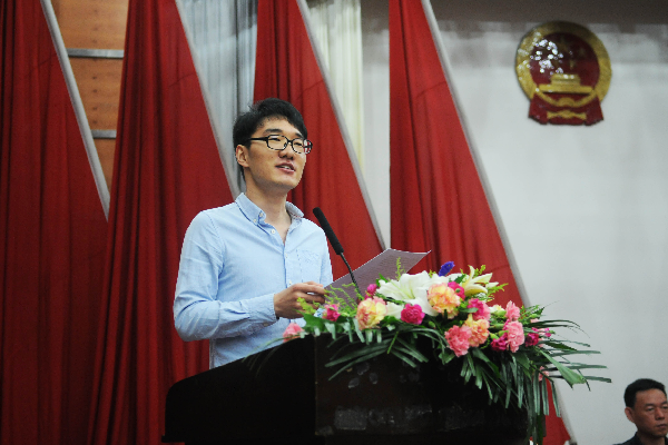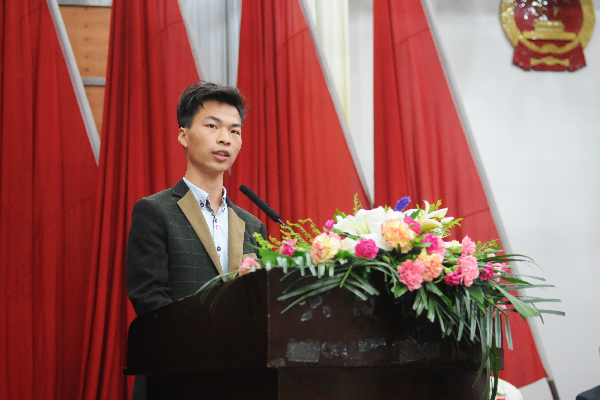 优秀学生代表黄思远、周仕君、戴长虹、蔡欣航分别发言。黄思远分享了他的创业经历,大三期间申报学校创新创业训练项目“INeeding社区”并组建首义先锋工作室团队,创业过程中困难不断,但他将克服困难的过程当作创业经历中的宝贵财富,将创新思维变成了一种习惯。