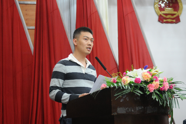 戴长虹讲述了自己用行动迎接挑战的大学生活。他积极参加各项课外活动,先后荣获学校科技学术节、“好新闻”评选多个奖项,但是他并没有就此止步,而是选择迎接更大的挑战。在2016年“全国机械创新设计大赛”中,与众多985、211等名校学生论剑,一举斩获湖北赛区一等奖。他说,人的一生总要有一段回忆起来热泪盈眶的日子,而那段艰苦的比赛之旅于他就是如此。