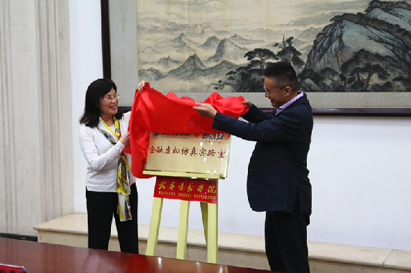 随后,周进与左敏为共建的金融虚拟仿真实验室揭牌,国泰安向学校捐赠教学软件,与会领导合影留念并参观实验室。