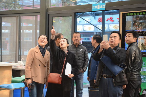 检查组现场查阅相关资料,并就具体问题进行了询问,随后分两组实地察访学生食堂和学生公寓。