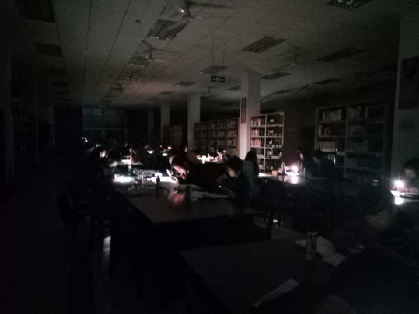 12分钟后,电来了,同学们很自然地放下手机安静学习。给排水1501班曾同学说:“当时我正在刷四级模拟题,刷到兴趣正浓时突然停电了,又不想放弃继续刷题,所以干脆就打起了手电筒复习。”同时,她还表示,处在这样一个学习氛围中,她感到格外温暖和舒心,也特别有干劲。
