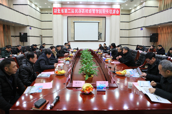 1月13日,湖北省第二届民办高校经管学院院长联席会在校召开。27所高校的50余名院长及老师应邀参会。我校校长周进出席会议并致辞,经管学院院长邓明然当选会长。