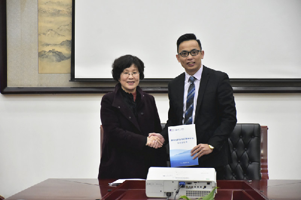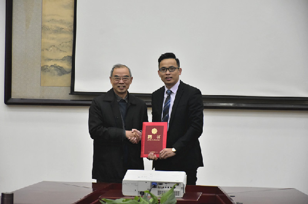 随后,洪天麟受聘为经济管理学院讲座教授,邓明然向其颁发聘书。