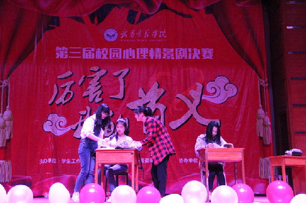据了解,心理情景剧大赛在我校已举办多届,学校更名为武昌首义学院后,已举办三届。大赛旨在通过心理情景剧表演的小舞台,来展现校园生活的大舞台,展现当代大学生敢于直面问题的精神风貌以及他们对亲情、友情、爱情和人生的思考与感悟,引导学生正确认识心理问题、解决心理问题,提高心理素质,使心理健康理念深入师生心中。