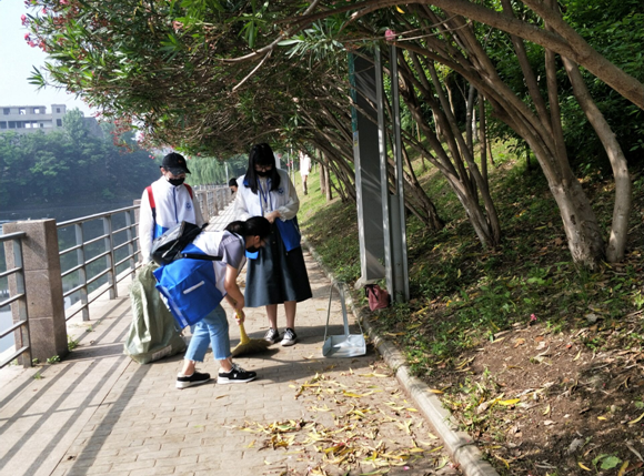 22名身着蓝色“河湖管护队”服装的志愿者来到巡司河管护段,细致巡查。他们分工明确、干劲十足。有的同学负责捡拾绿化带里的白色垃圾,有的同学清扫主干道的落叶和灰尘,有的倾倒装满的垃圾袋。经过一个半小时的清扫,巡司河旁的绿化带焕然一新,整个沿岸更加整洁。