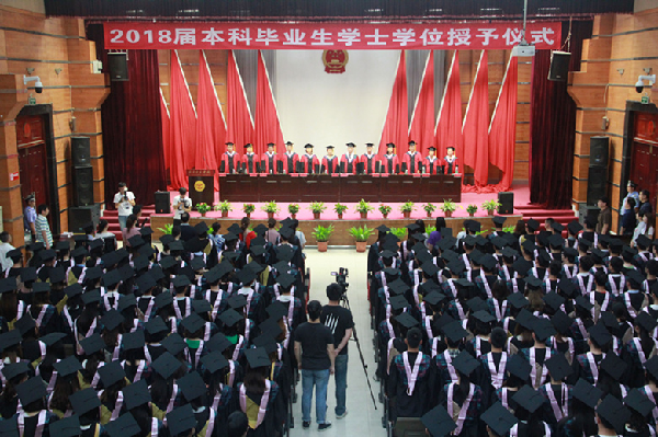 6月20日下午,学校2018届本科毕业生学士学位授予仪式隆重举行。党委书记冯向东,校长周进,副校长石长顺、李桂兰、金鑫,各教学单位负责人为2441名本科毕业生正冠授学位。