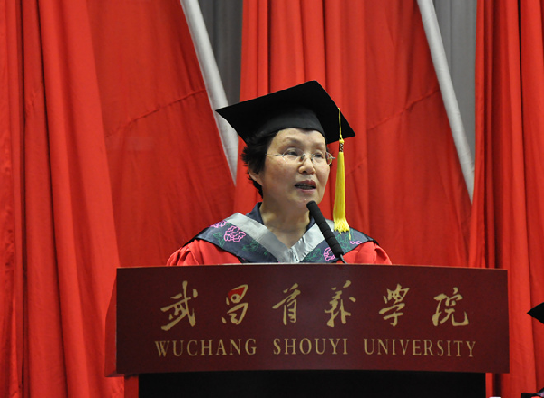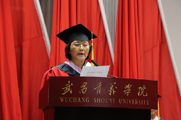 周进发表讲话。她首先向全体毕业生表示热烈祝贺,向所有为毕业生的成长倾注心血和汗水的老师、家长及朋友致以崇高敬意和衷心感谢。她深情地说,转眼间四年大学生活成为了大家的人生过往。在校四年,你们度过了人生中最重要的一段学习时光,获得思辨交流、终身学习的能力,获得一生行稳致远的重要基础,这是母校给予你们最宝贵的礼物。首义伴随着你们成长成才,见证着你们追求卓越、成就梦想,为你们的青春梦想插上腾飞的翅膀。你们在校期间,也见证了母校的进步。你们的母校从一个依托华中大的“孩童”成长为办学设施完善、学科门类齐全、办学特色突显的“独立青年”。一路走来,首义师生们用智慧和勤奋赋予了她特有的人文情怀和精神气质,向社会展示了武昌首义人专心办学、潜心育人、诚心奉献的责任担当。相信母校的每一步成长也同你们大学生活的点滴和所获得的学识一样,深深地刻在你们的心里,成为你们永恒的青春记忆。离别之际,她寄语毕业生,百尺竿头更进一步,永远不要停止前进的步伐;怀揣理想,脚踏实地;做人做事,豁达有担当。最后,她指出,同学们是和新时代共同前进的一代,我们面临的新时代,既是近代以来中华民族发展的最好时代,也是实现中华民族伟大复兴的最关键时代。大家既拥有广阔发展空间,也承载着伟大时代使命。首义的校园赋予了你们远大的理想、实干的品行和创新的勇气,希望你们乘着新时代的春风,寻找理想和实现抱负的切入点,勇于担当国家、社会、家庭的栋梁之责,成为民族复兴、社会进步的开拓者和建设者,并以“长风破浪会有时,直挂云帆济沧海”表达对毕业生的美好祝愿。