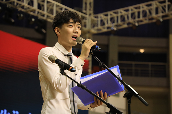 校友代表、自动化1104班魏嘉威发言。他分享了自己在台湾、美国的交换生经历和大二创业的曲折故事,以亲身经历告诉同学们要珍惜大学时光,把握机会。