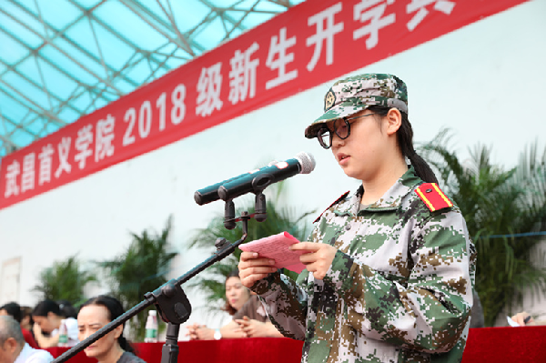 今天,我们在这里举行武昌首义学院2018级新生开学典礼暨军训开训仪式。在此,我代表学校对3811名2018新生表示热烈的欢迎,向承担我校新生军训任务的全体教官致以诚挚的问候和衷心的感谢!