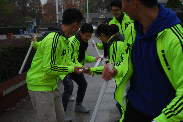 中午12点30分,热身小游戏和精彩的舞蹈之后,活动正式开始。根据活动规则,各参赛队须在定向区域完成“雷区取水”“穿越呼啦圈”“中流砥柱”“摩斯密码,主题呐喊”“珠行万里”“八人九足”“电子竞赛证书”等游戏,用时最少者获胜。同学们在老师的指导下,齐心协力,克服困难,成功完成游戏任务。最终,信科院、经管院并列第一,外语院获第三。
