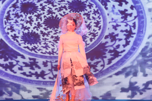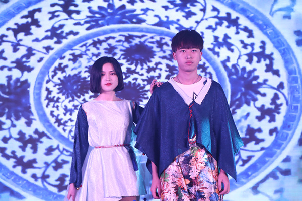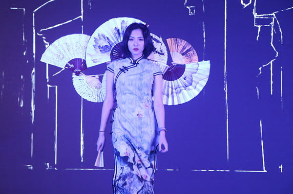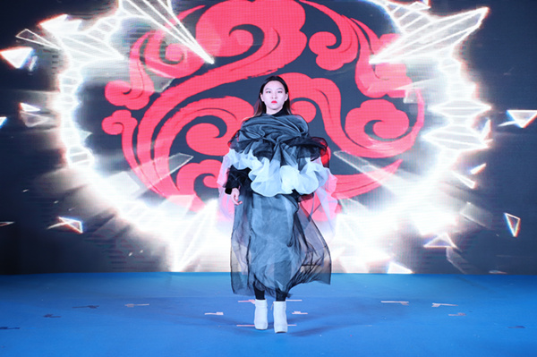 主会场现场,我校艺术设计学院的“风之秀”展示作为文创服装秀环节出场。学子们身着独具中国古典文化元素的服装走秀,衔接不暇的模特以及创意十足的服装令在场嘉宾啧啧称赞。这些服装均是我校学子外出采风期间的灵感所得,其中蕴含的京剧脸谱、古风折扇、青花纹样、红色灯笼皆为中国古典文化的精髓所在,将其应用在服装设计上,独特的创意受到了参会企业的高度认同。