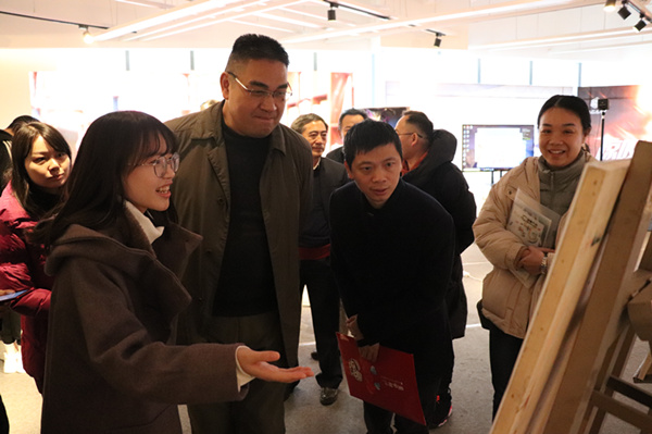 其后,文创“洪山力量”展举行,我校作为洪山参展的三大高校之一,展示了部分学子的作品。这些作品包括优秀学子的作品设计、今年秋季的采风写生,以及课题项目的作品等。吴天勇在参观我校学子作品时,对学子创意独特的黄鹤楼造型笔架,以及融合了非物质文化遗产元素的唐卡设计印象深刻,赞扬学生们灵活运用各种元素的能力和不拘一格的创意,并期待同学们能够继续努力,开拓创新。参展过程中,吴天勇同杨琳进行了亲切交谈,对学校概况、办学情况以及学生的就业实践情况进行了了解。