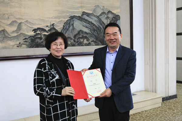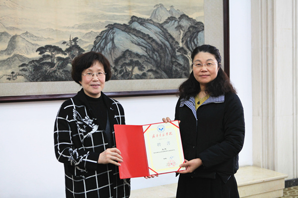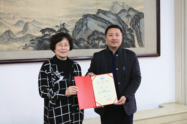 顾锋、顾锦平、王琴受聘为我校客座教授。周进为其颁发聘书。