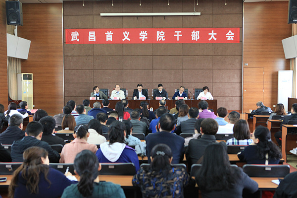 4月28日上午,武昌首义学院召开全校干部大会,宣布省委教育工委关于委派周进同志担任武昌首义学院党委书记、教育督导专员的决定。省教育厅副厅长、党组成员、省委教育工委委员黄国斌出席会议并讲话。学校常务副校长吴昌林主持会议。
