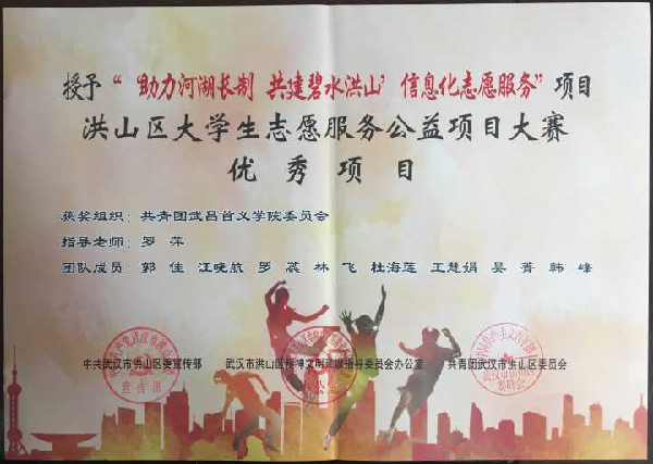 据了解,为积极培育和践行社会主义核心价值观,大力弘扬“奉献、友爱、互助、进步”的志愿精神,深入贯彻落实党的十九大精神,深刻领会习近平总书记关于青年工作的重要思想,充分发挥志愿服务先进典型的示范激励作用,学校高度重视大学生志愿服务工作,不断推动志愿服务活动制度化常态化发展。2018年,校团委积极响应洪山区“助力河湖长制·共建碧水洪山”的精神,成立了武昌首义学院河湖管护青年志愿服务队。服务队采取日常志愿服务与主题志愿服务相结合的方式开展活动,每月对学校河湖管护结对地点巡司河进行河湖巡查,同时组织志愿者进企业、进社区、进校园进行义务宣传,普及绿色低碳生活理念和环境保护知识。服务队还聘请学院专业教师进行指导,针对性开展河湖预警巡护、调研监测等专业项目,营造了良好的志愿服务工作氛围,有力培养了学生的社会责任感、创新精神和实践能力。
