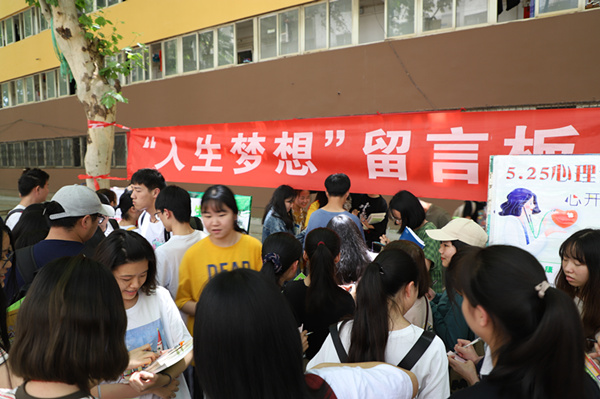 5月23日中午,第四届“5•25”大学生心理健康教育活动在中区林荫道举行。心理咨询中心专职心理老师、各学院兼职心理老师现场助力,点燃了广大学子的参与热情。