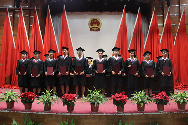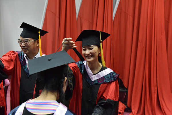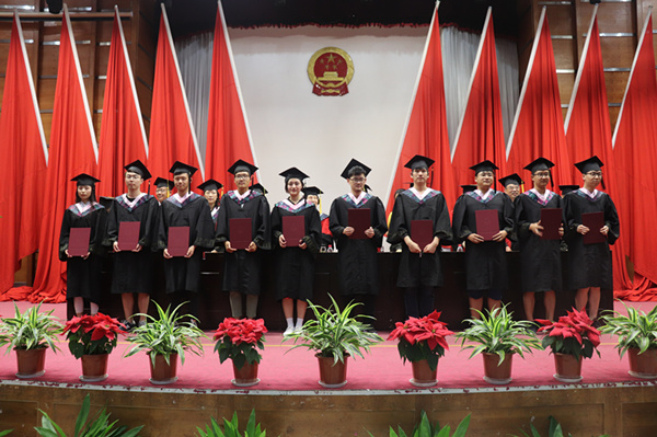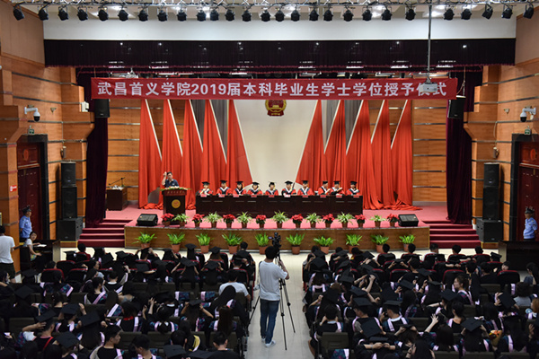 6月11日下午,学校2019届本科毕业生学士学位授予仪式在模拟法庭隆重举行。校党委书记周进,常务副校长吴昌林,副校长石长顺、李桂兰,校党委副书记、副校长金鑫,各教学单位负责人为2749名本科毕业生正冠授学位。