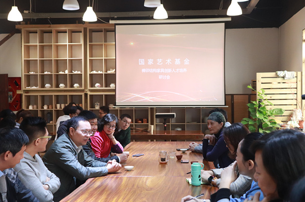 开幕式结束后,出席仪式的领导嘉宾进行了榫卯结构家具创新人才培养研讨。