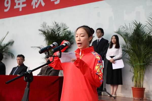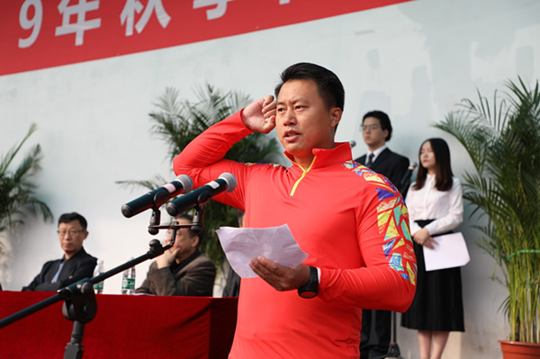 在全校师生的翘首期盼中,校长李崇光宣布2019年秋季田径运动会开幕。