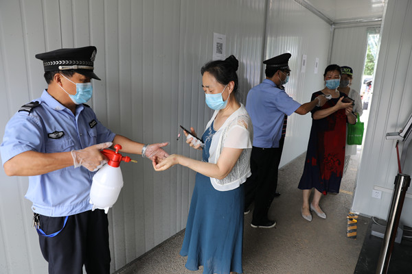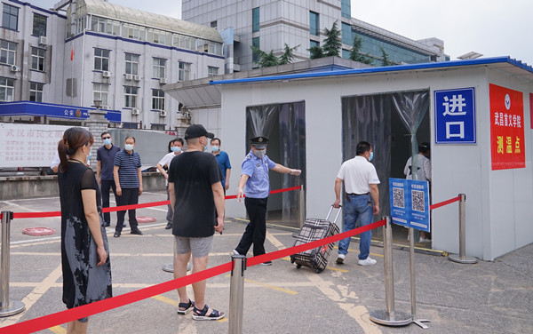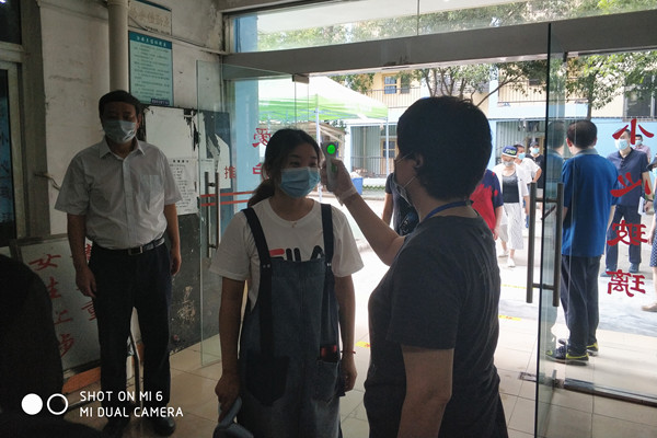 在学校大门,“学生”保持1米以上安全距离,逐一进入查验通道。工作人员为“学生”测量体温显示正常后,“学生”再通过门禁系统刷验校园通勤码、核验身份和健康情况后,方可进入校园。车辆入校通道上,工作人员查验驾驶员及随行人员身份信息、校园通勤码和体温,对车辆外部进行消毒后,方可进入校园。