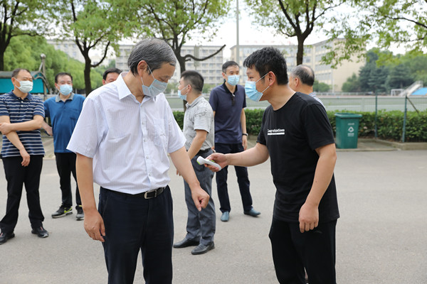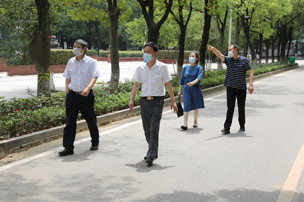 为深入贯彻落实国家、省、市以及学校有关新冠肺炎疫情防控工作精神,进一步做好我校2020年毕业生返校准备工作,6月12日下午,学校举行2020年毕业生返校演练。党委书记周进、校长李崇光、副校长金国杰、党委副书记邹星庐现场检查各单位演练工作。相关职能部门负责人陪同。