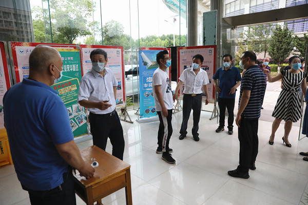 演练以学生入校为起点,由老师扮演学生,分别模拟进入校园、办理毕业手续、入住宿舍、食堂就餐等场景,演练了查验身份、查验校园通勤码、测量体温、进出流程及应急处置等环节。校领导认真查看和体验每一环节运行,与工作人员交流具体工作情况,并提出相应改进意见和建议。结合近期天气预报,各单位均按晴雨天制定了两套工作方案,确保毕业生返校工作暖心贴心、安全高效。所有场馆、手续办理点均设置为单向进出,保证人员流动有序、合理间隔,不聚集、不扎堆。