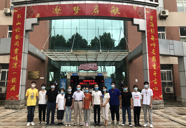为迎接毕业生返校,所有工作早已准备就绪。8时许,金国杰副校长、邹星庐副书记和各职能部门负责人一同在学校门口迎接毕业生。