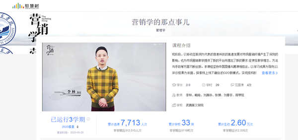 日前,记者从教务处获悉,截至本学期末,艺术设计学院宋华教授课程组的线上课程《广告的力量》已在智慧树平台累计运行5学期,被80余所高校选用,网络互动超过2.26万次,经济管理学院李林教授课程组的线上课程《营销学的那点事儿》在智慧树平台累计运行3学期,已被30余所高校选用,网络互动超过2.6万次。凭借优质的课程资源和优异的网络数据,这两门课程均已斩获多项省级奖项。这标志着学校线上课程建设取得阶段性成果。