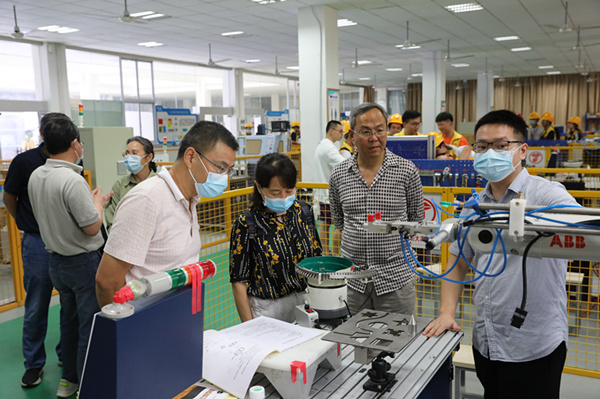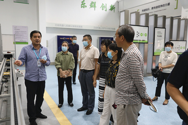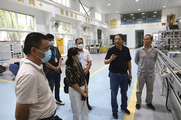 会后,杨建忠一行参观了新法院融媒体仿真实验中心、智能制造产教融合创新实践教学基地、工业机器人综合实验室等地。