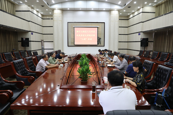 9月15日上午,洪山区狮子山街区人大代表、狮子山街党工委书记杨建忠和湖北工业大学副校长龚发云等一行来校开展“三进”活动。校党委书记周进、校长李崇光、副校长金国杰等热情接待,与杨建忠一行在行政楼八楼会议室开展座谈。