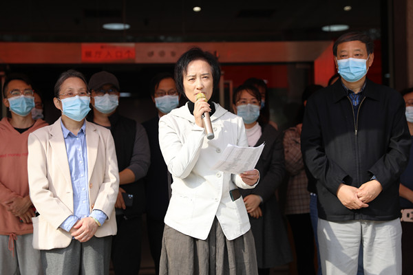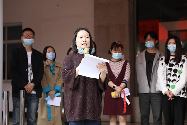 艺设院院长胡雨霞致辞。她说,此次展出作品是2019级学生历时三周而成,成果丰硕。由于疫情,今年学院将每年到省外风景名胜地的写生改在武汉市内及校园中,让学生将目光放在了学习、生活的周边,静下心来感受身边的环境以及人和事。同时,她对所有带队老师的辛勤付出和同学们的认真投入点赞。