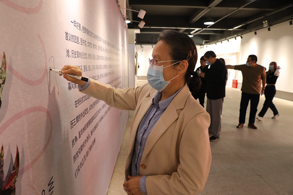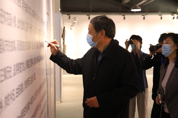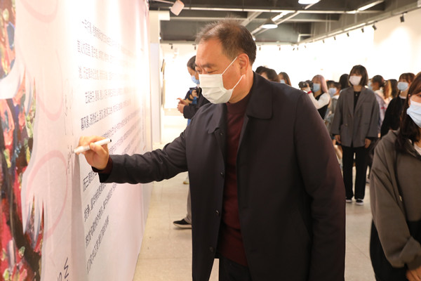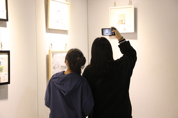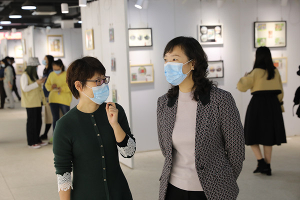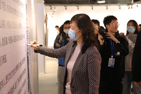 随后,校领导,各学院、职能部门负责人和师生们饶有兴致地参观了作品展。