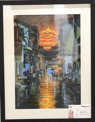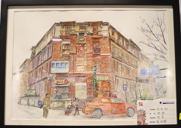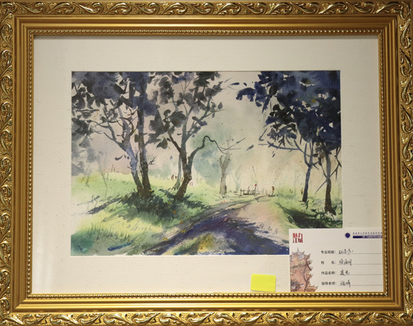现场的展品琳琅满目,令人目不暇接。三两成群的同学们在作品前驻足欣赏,老师们不时对优秀作品进行点评。《筱筱庭影》中虚实有致的画面令作品格外耐看,同时坚毅、紧凑的笔触又令人不得不感叹画师之耐心,凌乱中富有整体,整体又不失单调,更加可见画师之功底。《静谧小院》中的自然界景物各具神态,将真实世界的美用绘画的形式予以体现,形象化的语言创造绘画艺术的表现空间,松紧有致的画面格外令人惊叹作品之优异。《余晖红阁》敏锐地抓住人文、地域风貌等风土人情,以较强的概括能力、敏锐的观察能力,在作品中流露出清新气息,阁楼庭院的红色与画面紧紧结合,分外醒目。《花语》中画面颜色安逸舒适,晴朗蓝和浅灰蓝的天空尤其养眼。静物勾勒极其细致,鲜花不管是从光感还是质感以及状态的刻画都极其深刻,使人不得不惊叹作者精妙之画工。“学弟学妹们的作品类型、风格、构思,色彩的运用各方面比我们去年的作品更加新颖大胆,值得夸赞。”前来观展的园林1801班周亦濠说道。