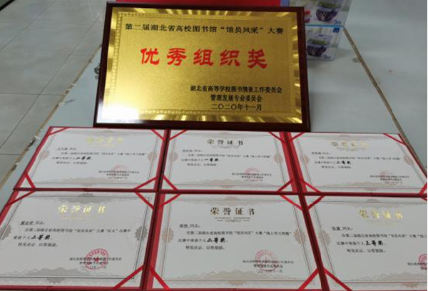 近日,第二届湖北省高校图书馆“馆员风采”大赛决赛落下帷幕。我校图书馆共荣获“线上答题”一等奖1项、二等奖3项、三等奖1项,“线上征文”二等奖1项,“现场演讲比赛”三等奖1项,并获“优秀组织奖”称号。