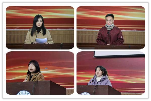 外国语学院方艺琛讲述了自己所带的英语1904班和翻译1901班参加湖北高校共青团“百生讲坛”决赛的故事。她讲述的题目是《育人育己——做新时代筑梦人》。她是一名新手辅导员,今年7月正式上岗,与所带学生的沟通联系是从网上开始的。开学之后,学生分班、选班干、常态化防控的“三座大山”,她一一逾越。在组织学生参加“百生讲坛”大赛时,确定节目形式、修改剧本、通宵排练,最终斩获铜奖。她说,育人也是育己,在未来的新征程中一定不负期待不辱使命,做新时代筑梦人!