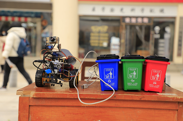 “这项发明给我这样不懂垃圾分类的人带来了福音,实在是太有用了!”。12月20日,在嘉鱼校区教学楼中庭举办的第十七届大学生科学技术节成果展上,计算机应用技术专业2006班逯雨佳面对“智能垃圾桶”发出感叹。