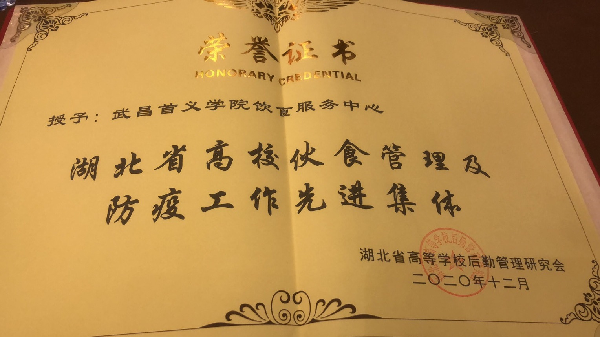 学校饮食中心获“湖北省高校伙食管理及防疫工作先进集体”称号