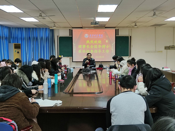 1月7日下午,金国华理事长到外国语学院走访慰问并就学院下一步工作做具体指导。理事会办公室和人事处负责人陪同,外国语学院领导班子和全体教职工参加会议。
