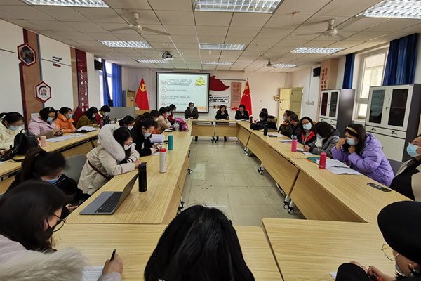 金鑫做指导讲话。她对外国语学院教工支部开展工作的力度、取得的成绩给予认可,对很多党员同志存在的共性问题发表了自己的看法,给出切实可行的建议。她指出,党建工作需要和业务工作相融合,党员的先锋模范带头作用应体现在日常工作的方方面面。她还对教工党支部结合自身人员结构特点、发挥自身专业长处探索新模式、做出特色、做出创新提出了希望。