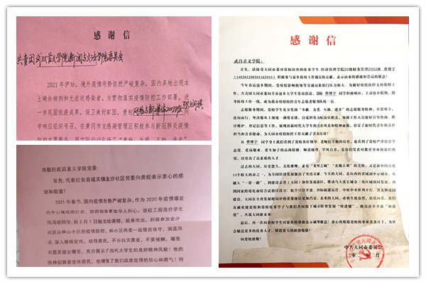 一封封感谢信,送来了亲切的问候;一张张工作照,填满了专注的模样;一则则报道,传递了别样的温暖。今年寒假期间,在常态化疫情防控下,首义学子积极响应国家、政府和学校的号召,纷纷加入各地抗疫志愿服务队伍,用青春的力量汇聚成一股暖流,用实际行动诠释着使命与担当,为抗疫贡献自己的力量。