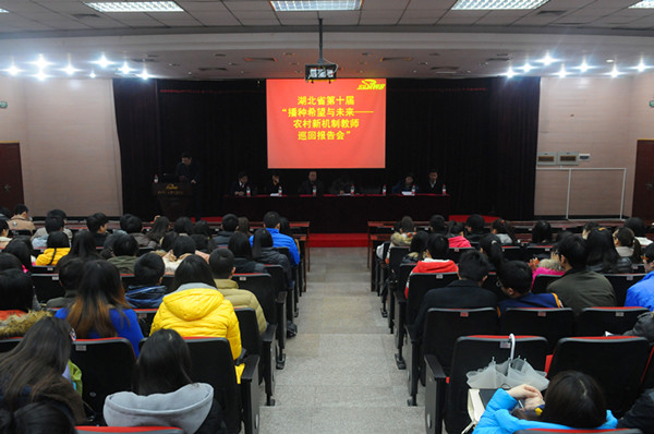 3月6日上午,湖北省第十届“播种希望与未来——农村新机制教师资助行动计划”巡回报告会抵校演讲。