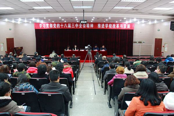 2月26日下午,学校召开以“学习贯彻党的十八届三中全会精神 推进学校改革与发展”为主题的干部学习及工作布置会议。全体校领导出席会议,周进校长主持。