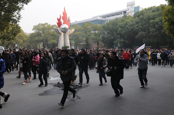 12月25日下午三点半,一年一度的冬季长跑如期举行,全校逾千名教职员工一同奔向2014幸福年。